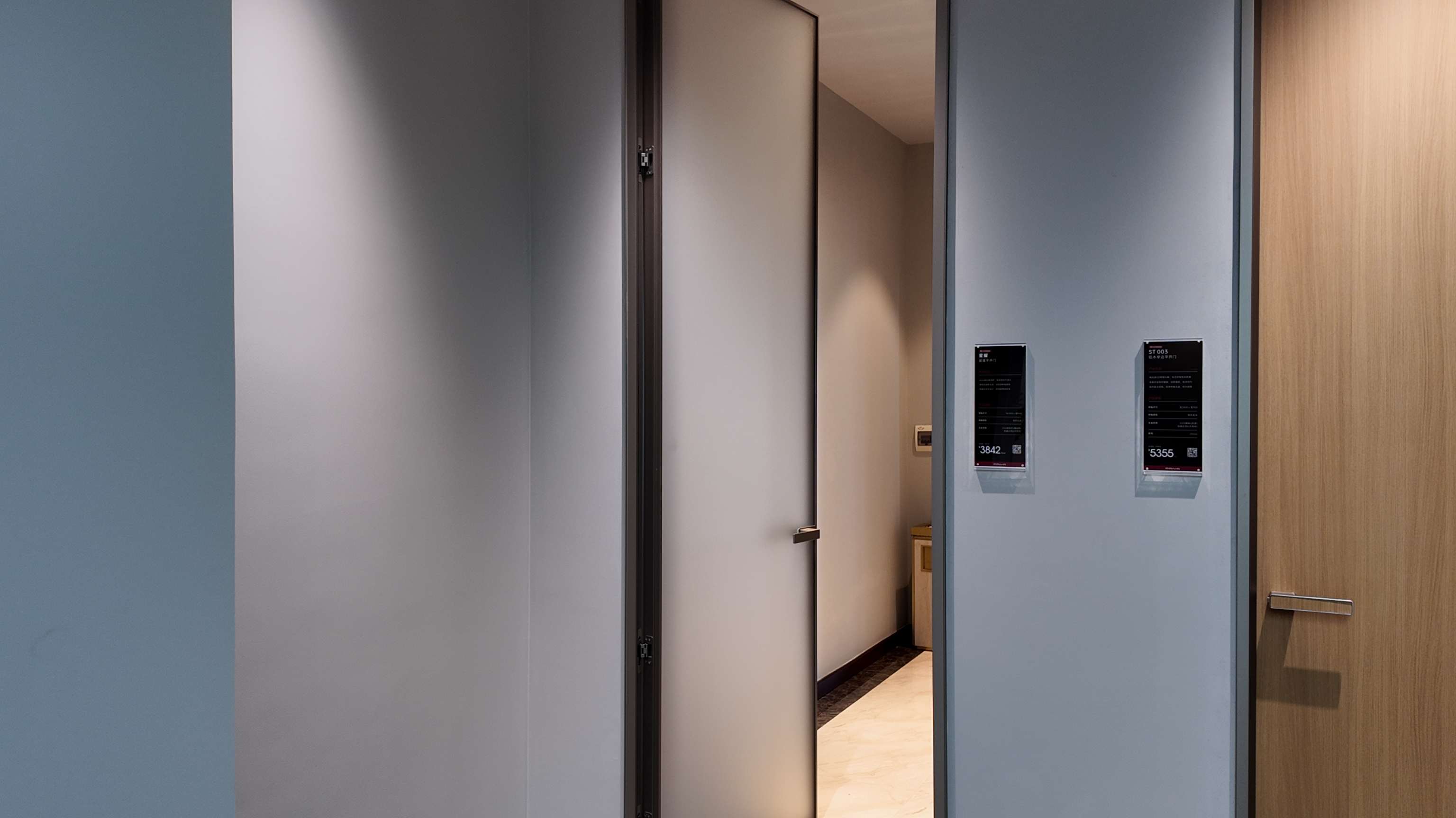 The standard hardware includes flag hinges and concealed top-and-bottom hinges, which can be selected according to customer preferences. For taller door sizes, customers can opt for three-way concealed adjustable hinges, offering better load-bearing capacity, a more refined appearance, and a more versatile product choice.
