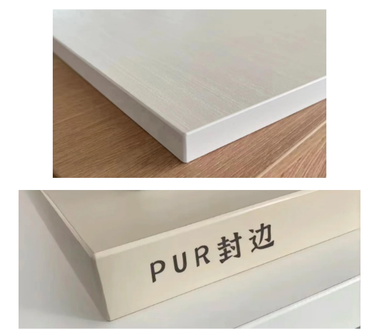 The panels are finished with PUR (Polyurethane Reactive) edge-banding technology, significantly enhancing waterproofing and moisture resistance for long-lasting.durability.
